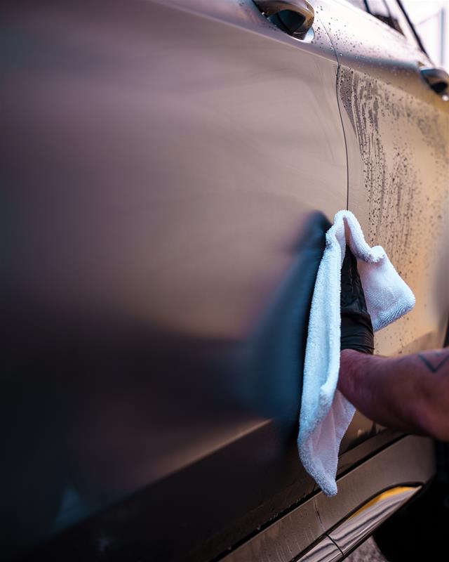 Vi anbefaler at benytte to af Yum's Drying Aid Towels, så du er sikker på ikke at efterlade vand eller Quick detailer på overfladen.